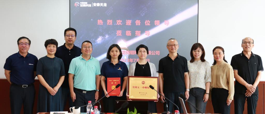 座谈会上,刘向东详细听取了安泰天龙(天津)钨钼科技关于工会工作、产业工人队伍建设工作专题汇报,并与王克文共同为安泰科技核聚变用难熔金属材料研究团队颁发“全国五一巾帼标兵岗”奖牌及证书。刘向东指出,安泰天龙(天津)钨钼科技工会工作开展的扎实有效,产业工人队伍建设工作稳步推进,职工创新创效活力不断激发。下一步,要深入学习贯彻习近平总书记关于工人阶级和工会工作的重要论述,紧紧围绕高质量发展这个首要任务,大力弘扬劳模精神、劳动精神、工匠精神,深化产业工人队伍建设改革,完善技术技能人才培养体系,团结带领广大职工为推动经济社会高质量发展作出更大贡献。